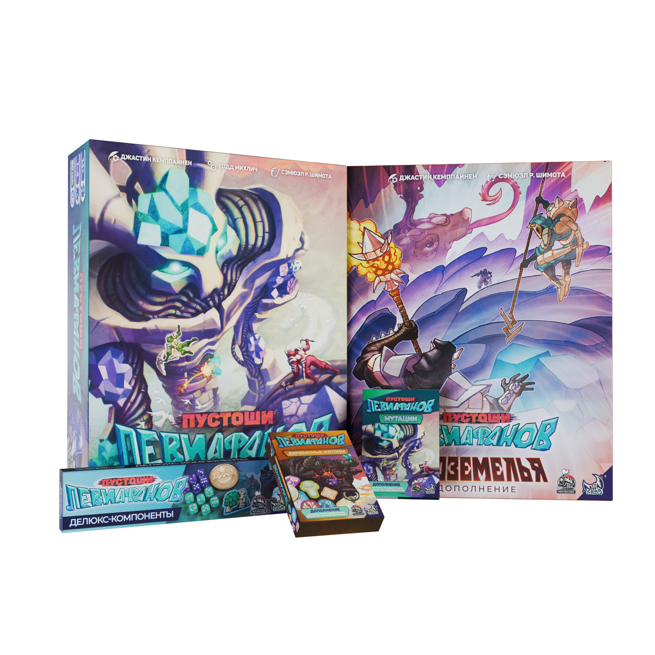 «Пустоши левиафанов» + Дополнение «Подземелья». + два комплекта улучшенных компонентов, также дополнение «Мутации».